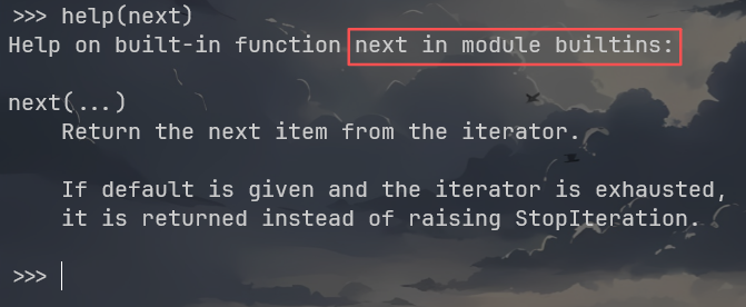 1 2 3 4 g = (i for i in range (3 )) print (next (g)) print (next (g)) ...