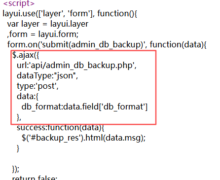 打开网页源码,可以看到POST请求是发送到api/admin_db_backup.php的
