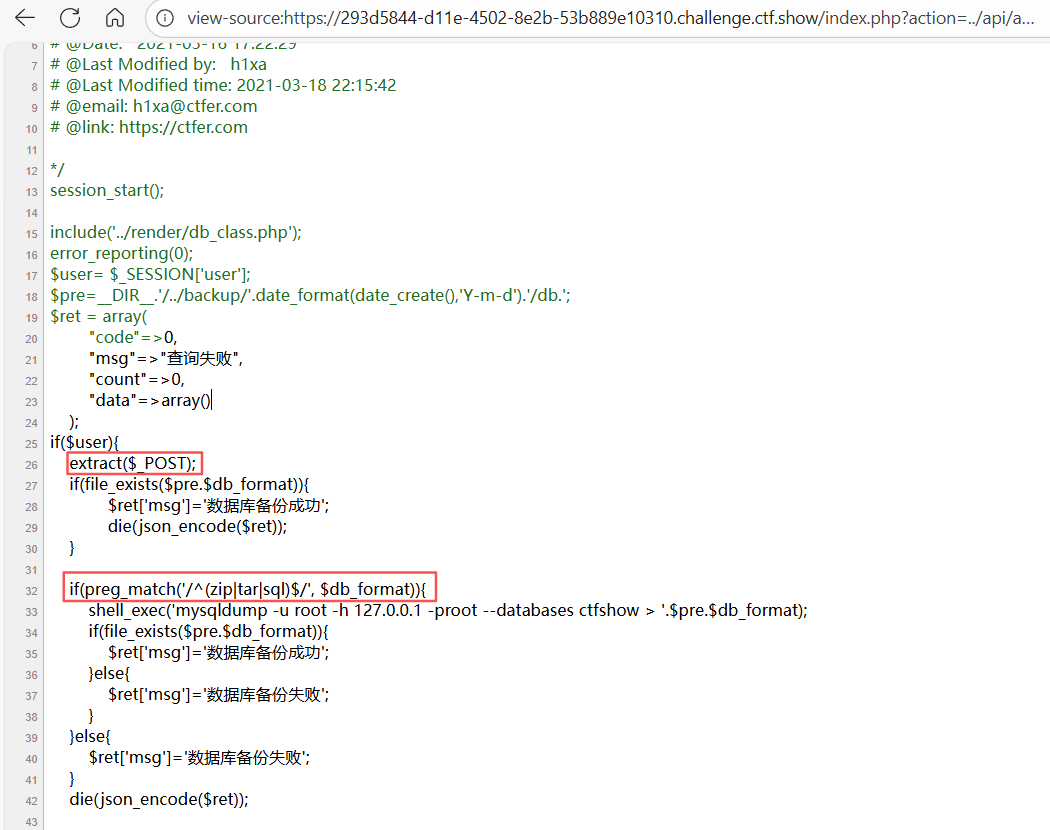 查看api/admin_db_backup.php源码,GET请求/index.php?action=../api/admin_db_backup
