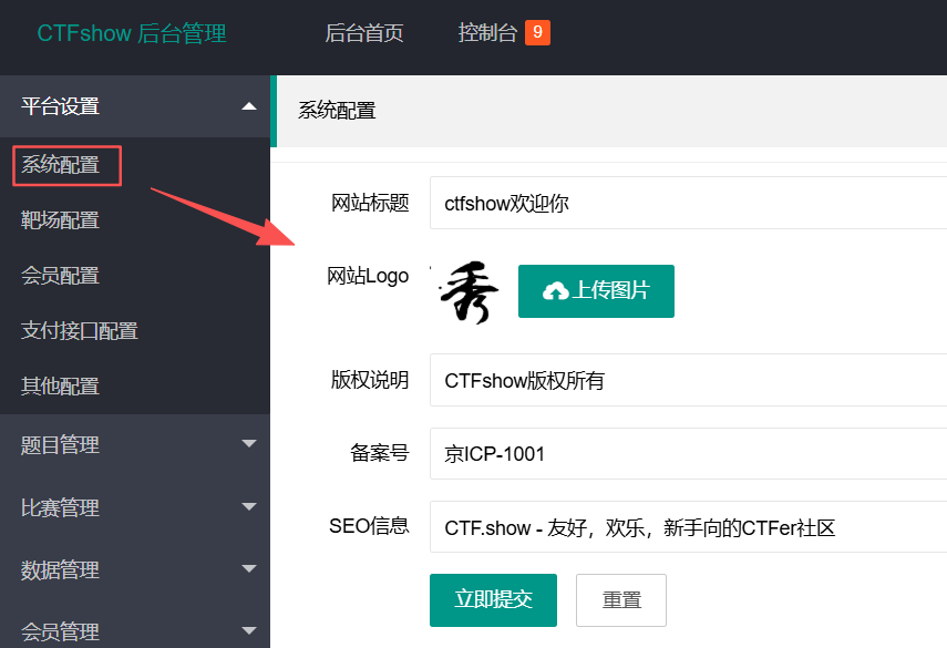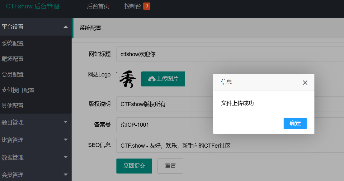 用万能密码登录首页后,在系统配置功能处可以看到有个图片上传功能