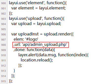 我们看看源码,GET传参/index.php?action=../api/admin_upload,这里只截取关键代码