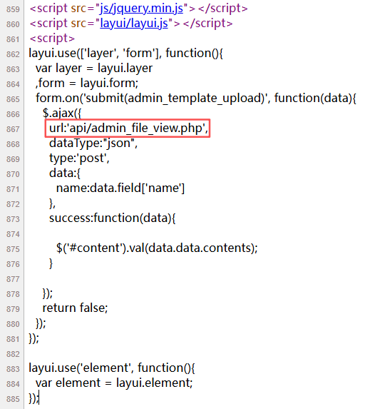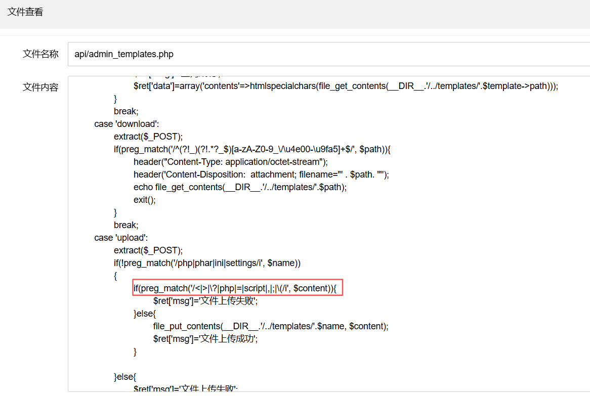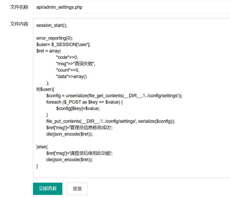 在文件查看功能处查看源码,找到api/admin_file_view.php,我们看看源码