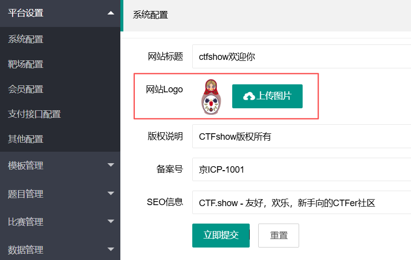 在系统配置那里可以看到有个网站Logo上传,可以用这个当中转站