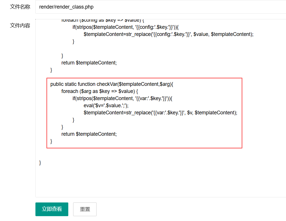 一个个分析其他代码,发现render/render_class.php有个eval函数