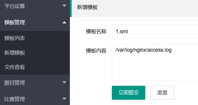 然后页面统计写/var/www/html/templates/1.sml