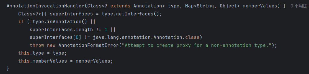 接下来我们来构造代码,先通过反射创建AnnotationInvocationHandler的构造实例,注意类型要强制转换为InvocationHandler