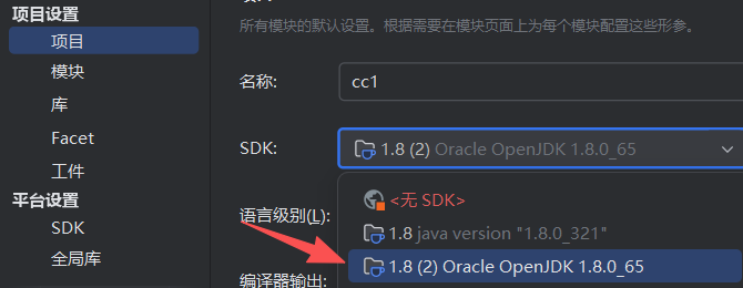 然后在项目处选择SDK为JDK 1.8.0_65
