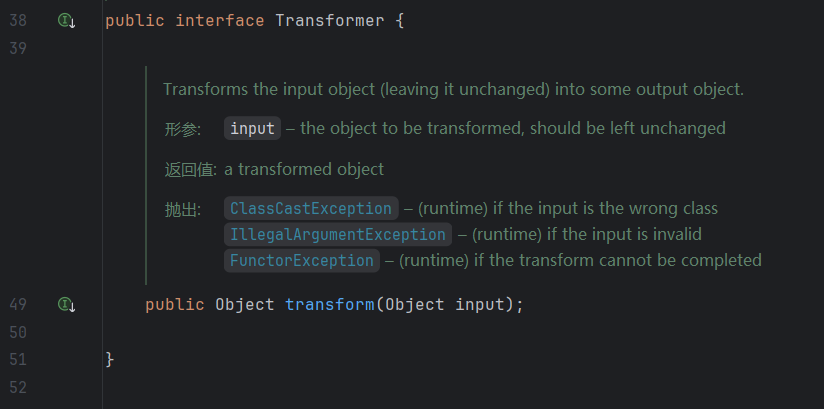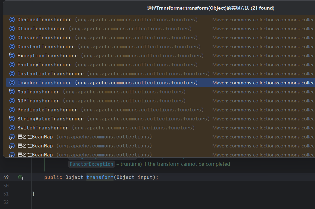 CC1源头就是Commons Collections库中的Tranformer接口,里面有个transform方法